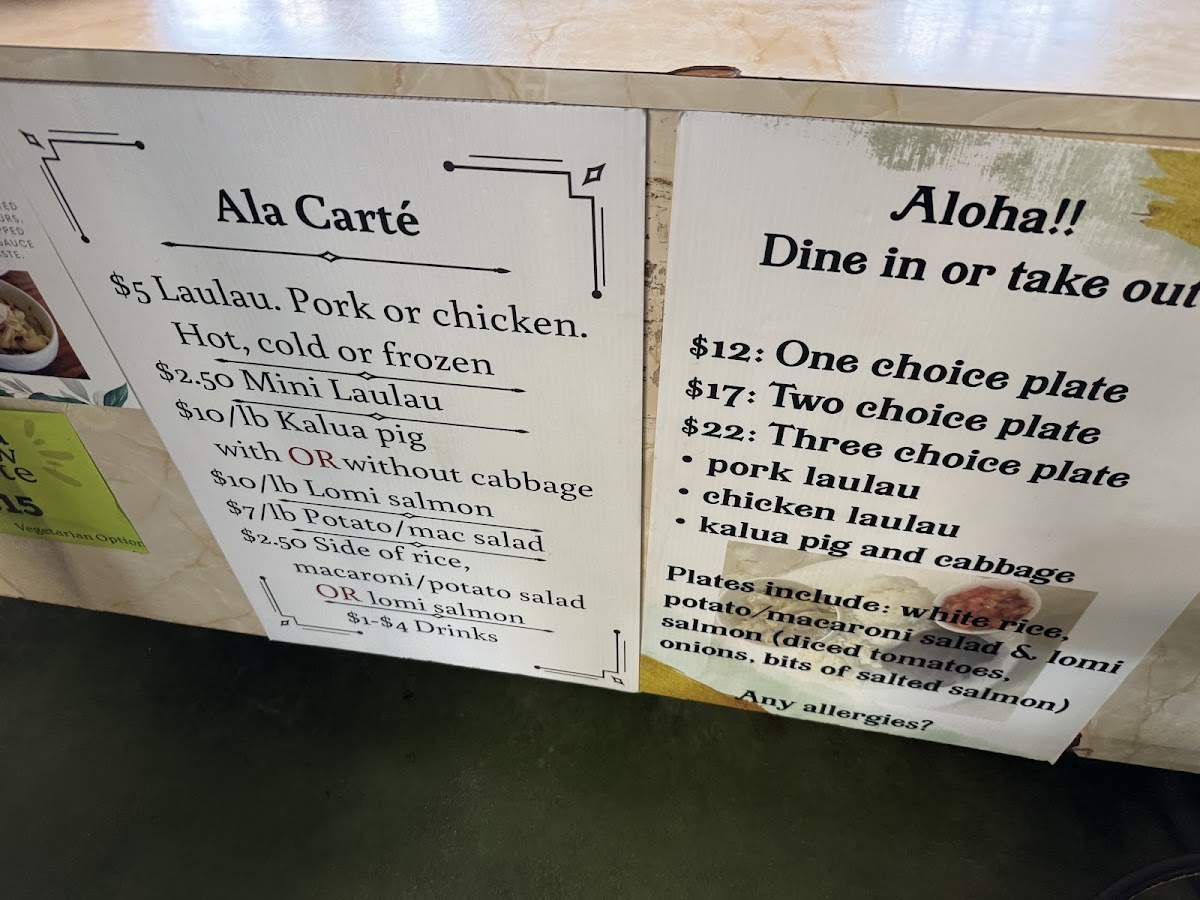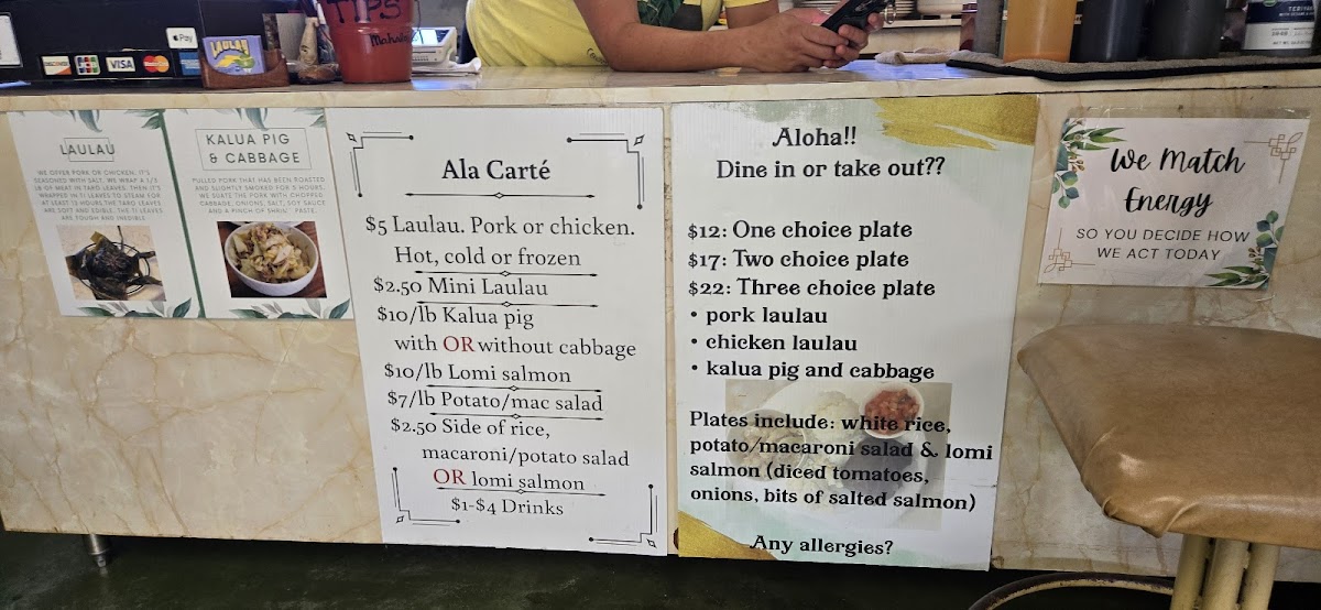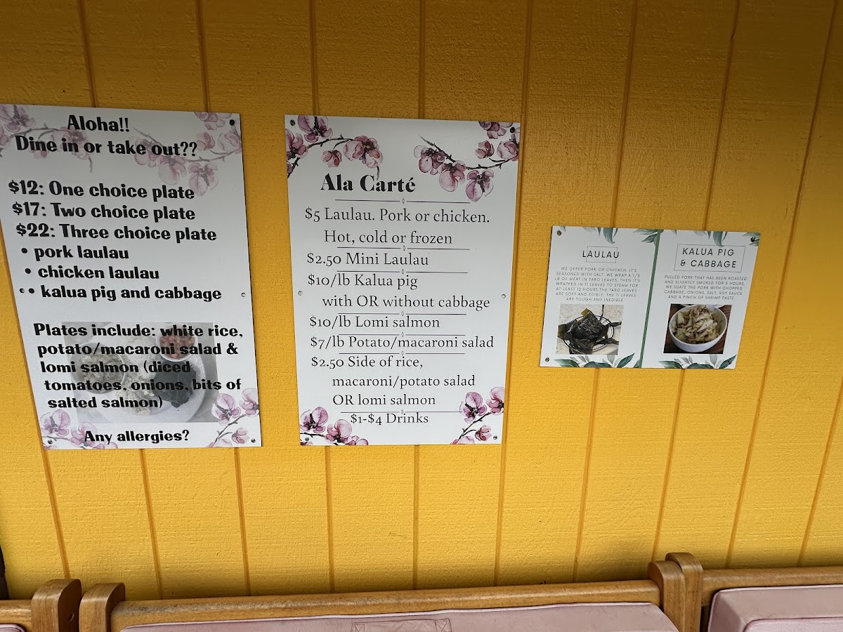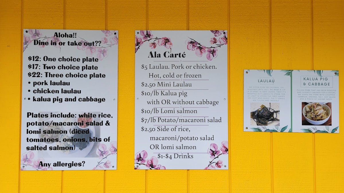 Welcome to Kaaloa's Super J's, a hidden gem nestled on the Big Island of Hawaii. This charming establishment specializes in authentic Hawaiian cuisine, showcasing delectable offerings like Pork and Chicken Lau Lau, and succulent Kailua Pork. Priced affordably, their combo plates provide a delightful sampling of Hawaii's culinary heritage at just $12. Each plate is served with white rice, lomi salmon, and creamy potato-macaroni salad, creating a comforting meal that captures the essence of island life.